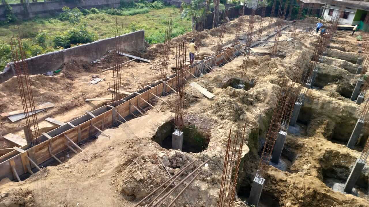 Fortschritte beim Bau von vier Klassenzimmern für die Fransalian School in Jonai, Assam